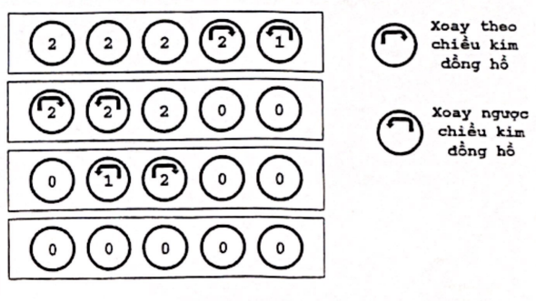 - Khi xoay ngược chiều kim đồng hồ một nấc, trạng thái bóng đèn đó thay đổi theo quy tắc: