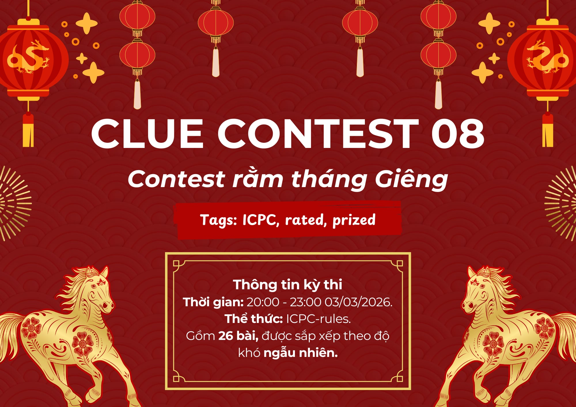 👀 Clue Contest 08 - Contest rằm tháng Giêng sẽ là một contest mang đậm chất ClueOJ, phá vỡ mọi quy tắc truyền thống về việc ra một contest lập trình thi đấu. Cũng phải thôi, do dạo này tình trạng cheat tràn lan quá nên việc giữ “lửa” cho những problem setters như chúng mình, hay cho các bạn muốn tự sức làm, cũng là một việc rất khó khăn. Nhưng điều đó không đồng nghĩa với việc chúng mình sẽ ngừng tạo sân chơi cho các bạn, chỉ là theo một cách rất “phi truyền thống” từ cách set bài và thể lệ trao thưởng. Hy vọng các bạn ủng hộ sự đổi mới này của chúng mình!